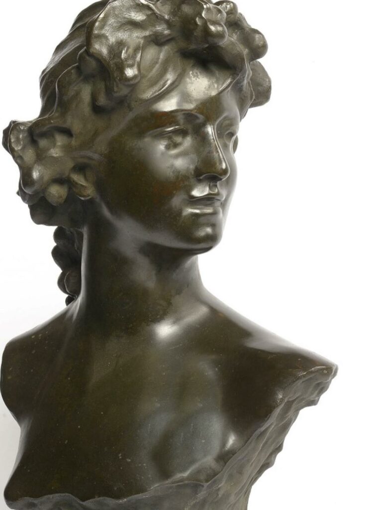Deze prachtige bronzen vrouwenbuste is een opmerkelijk werk uit de Art Nouveau periode, gekenmerkt door zijn vloeiende, ...